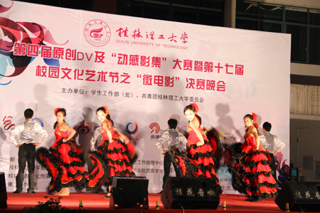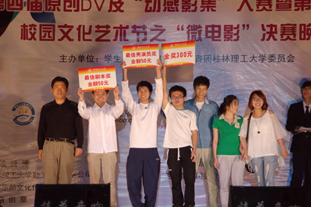 日前,由学工部(处)、校团委主办,学生工作助理中心、艺术学院团委学生会承办的第四届原创DV及“动感影集”制作大赛暨第十七届校园文化艺术节之“微电影”决赛晚会在雁山校区教三栋广场举行。 大赛以“红”为主题,立足于提高同学们的审美修养和人文素养,旨在传承中国共产党奋进开拓的优良传统,弘扬伟大的民族精神。学生工作部(处)副部(处)长张雷老师为此次晚会致开幕词。随后,入围决赛的十组作品依次在大屏幕呈现给了广大观众,根据评委评审及网络微博投票结果,金奖作品最终由《背影》摘得,银奖作品分别是《shine》及《oh my god》,铜奖作品分别是《活》、《一天》《爱,因为在心中》,单项奖也都花落各家。决赛期间还穿插了大学生艺术团和艺术学院带来的精彩的文艺节目,为决赛助兴。 参加作品用语言描绘生活,用画面记载青春,用年轻的心体验人生,展现了Beat365官网学子的风采和特长,丰富了同学们的校园生活,促进了同学们对社会主义核心价值观的学习和德智体美全面发展,营造了良好的校园文化氛围。 桂林电视台相关报道:http://www.gltvs.com/NewsFiles/201206/20120604183230097821b313ae4fe5.shtml