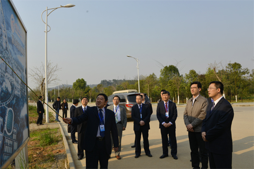 秦斌书记(右二)一行听取Beat365官网雁山校区建设情况汇报
