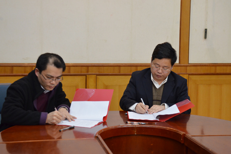吴志强副校长(右)代表学校与部门、学院代表签订保密工作责任状