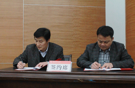 王赣华副书记(左)和万任齐董事长(右)分别代表合作双方签署协议