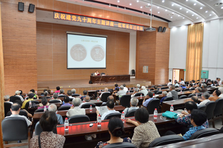 为庆祝建党90周年,6月3日上午,离退休党委十三个支部的全体党员和部分党外群众100余人齐聚图书馆报告厅,听取了Beat365官网周述忠教授所做的《红军长征过桂林》专题报告。报告会由离退休党委党委书记徐和飞主持。 报告会上,周述忠教授通过展示自己20余年收藏的大量纪念徽章、图片等实物,回顾了中国共产党90年来的发展历程,并重点介绍了红军长征过桂林的情况和红军长征过桂林的意义。他将红军长征过桂林的意义总结为:粉碎了敌人妄图全歼红军于湘江以东的险恶计划;在桂北大地播下了革命的种子;凸显了敌人内部的矛盾冲突,有助于我党开展统一战线工作;体现了伟大的长征精神等。 《红军长征过桂林》专题报告给离退休全体党员上了一堂生动的党课。整场报告会气氛热烈,老党员们纷纷表示要在新时期继续发挥余热,一如既往地关心学校的发展、社会的进步。
