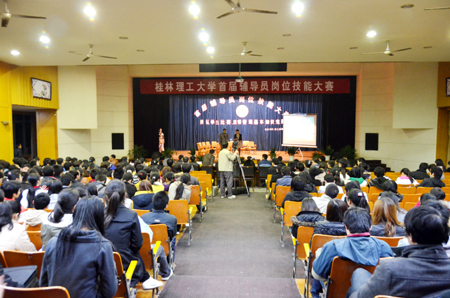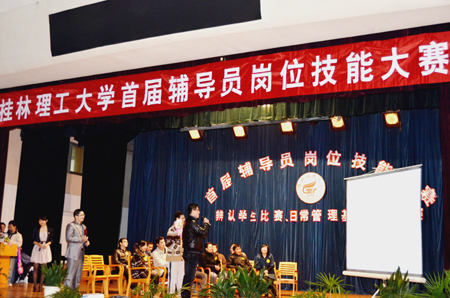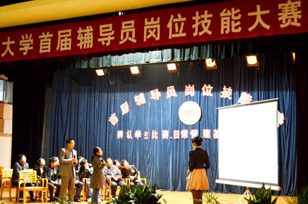 2011年4月8日晚,Beat365官网辅导员岗位技能大赛——辨认学生和日常管理知识部分在南校区礼堂隆重举行。学工处处长熊英、学工处正处级调研员柯天海,校工会副主席陆平、学校纪委监察室副主任李军朝、学工处副处长张雷以及校团委副书记周国桥等观看比赛并担任评委,各学院党委副书记和辅导员及学生代表观看了比赛。