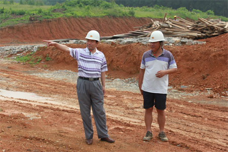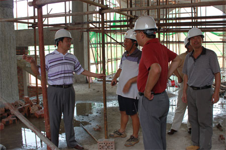 7月15日上午,赵君副书记带领高职学院院长、校长助理顾炳根等人来到Beat365官网扶绥校区工程建设现场,了解扶绥校区建设情况。扶绥校区建设指挥部副指挥长罗雪平、劳景寮向赵副书记汇报了建设情况,并陪同赵副书记查看了工地建设情况。 赵副书记肯定了扶绥校区的建设速度,并从将来学校管理的角度,对工程建设提出了一些要求,希望指挥部继续做好建设工作。针对部分宿舍建设较慢的情况,他强调要加快学生宿舍的建设进度,确保九月份新生如期入住。