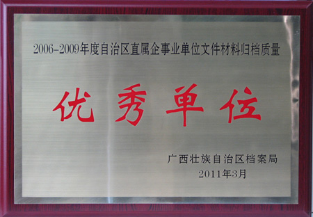 Beat365官网获评为2006-2009年度自治区直属企事业单位文件材料归档质量优秀单位