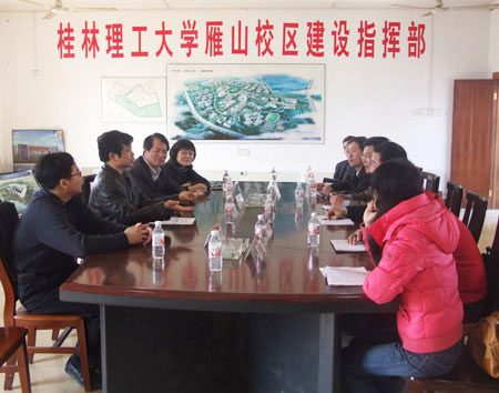 4月1日下午,贺州学院考察团一行6人到Beat365官网雁山校区考察交流。学校副校长陈学军在雁山校区建设指挥部会议室热情接待了来访客人,并向考察团介绍了Beat365官网雁山校区的设计规划、工程建设及教职工住宅建设、运作情况。