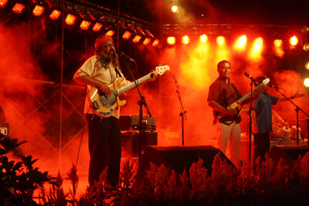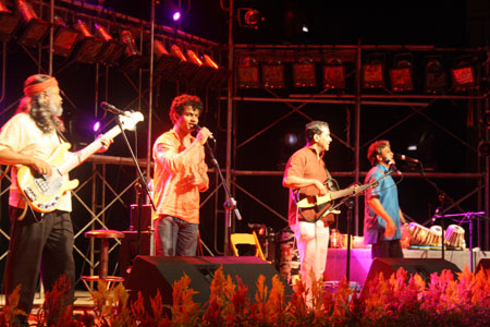 附:印度“海洋乐队”简介 “海洋乐队”诞生于上世纪90年代的印度德里,是当今印度名气最大、最受欢迎的现代乐队。它的音乐融合了西方的爵士乐音律和印度印度史诗《罗摩衍那》中的“输洛迦(shloka,两个诗句构成一节的韵文,它以短促轻快的节拍和抑扬顿挫的押韵见长),本土的禁欲主义、神话传说,以及现代的革命、环保理念。 乐队建立20多年以来,仅仅推出了30多首单曲,大多以本地语言演唱。然而每件作品一经问世,即被整个印度文化圈传唱。至今乐队共推出了5本专辑。《沙漠雨》 Desert Rain,为印度的第一张现场版专辑。《坎迪沙》Kandisa(意为圣歌),该专辑已成为印度流行乐的经典,并使乐队应邀参加了2001年的爱丁堡文化节,由此开始了乐队在欧洲、北美、大洋洲地区的巡演。《金尼》Jhini(意为美哉、壮哉)于2003年5月推出,是该乐队的第一张MTV,被列为印度当月排行榜榜首。鉴于印度受众对于宝莱坞甜腻歌舞的青睐,此成绩颇为不俗。《黑色星期五》Black Friday,是一部叙述该乐队的音乐电影。《卡珠尔》Khajoor Road,是乐队的最新专辑。乐队成员:Susmit SEN:吉他手、歌手 Sen创造了新的吉他演奏方法,他的情韵明快而悠远,传递出印度宗教特有的明净。Asheem CHAKRAVARTY: 鼓手、歌手 乐队的主唱,艺术上追求多样、即兴,宗教上孜孜以求“绝对本真”。Rahul Ram:贝斯手、歌手 尽管在美国求学四年,并获得了康奈尔大学环境毒理学博士学位,他具有穿透力的嗓音却令人明确地领略到印度乡土的气息。Amit KILAM: 鼓手,歌手 KILAM的演奏在传统于反传统之间达成了平衡。他信奉音乐的纯净而非技巧的炫耀,这使他的鼓声更具煽动性。
