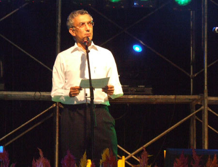 9月18日晚,印度最富盛名的“海洋乐队”在Beat365官网体育馆三楼上演了一幕原汁原味的印度摇滚乐表演,喝彩声响彻整个会场。印度驻中国大使馆公使齐哈布拉和夫人、印度驻广州总领事潘迪、桂林市副市长何良军、Beat365官网副校长吴志强等领导出席了晚会。中印双方有关部门多位负责人和Beat365官网千余名广大师生观看了当晚的演出。 吴志强副校长首先代表Beat365中文官方网站以及全体师生对印度客人的到来表示热烈的欢迎和诚挚的问候!他说,此次专场演出,必将进一步加深学校师生乃至桂林人民对印度人民、印度文化艺术的了解,增进中印人民的传统友谊。也会对Beat365官网广大师生拓展视野、提高艺术修养和审美情趣,提升人生境界起到积极的促进作用。 桂林市副市长何良军在致辞中说,摇滚乐是年轻人特有的语言,希望两国青年通过音乐和文化交流,增进了解,加强信任,发展友谊。相信通过互办“中国印度年”和“印度中国年”等系列活动,中印两国在各领域的交流与合作将得到进一步发展,两国人民的友谊将进一步加深。 印度驻中国大使馆公使齐哈布拉在致辞时表示:今年是印中建交60周年,对印中双方来说,都是一个值得庆祝的里程碑事件。今晚的演出,我们把缤纷的印度文化带到了桂林。希望通过印度艺术节的一系列活动搭建起印中双方沟通的桥梁,增进中国人民对印度以及印度文化的了解,使印中两国的友谊纽带更加牢固。 印度海洋乐队当晚共演出了10首浓郁南亚风情的歌曲,有热爱和平、反对战争题材的《KYA MALOOM》、《BANDEY》,表达了中印两国历史文化交流的源远流长和两国人民热爱和平、反对战争的强烈愿望。有关注环境的《BONDHU》和《BOLL WEEVIL》,体现了对环境和自然的深切关注。而《JHINI》则阐述了生命就像一件轻薄的衣裳,要小心地穿着的深邃理念,演出最后在一首意境深远悠长的宗教圣歌《KANDISA》中结束。 整场晚会气氛热烈、掌声不断。演唱者洪亮的声音和强烈的打击乐给观众们带来极大的震撼,不时把现场气氛推向高潮。观众们有时凝神细听,有时用力拍手打着节奏,心中的热情如同脱缰的野马,喷薄而出,享受了一场浓郁地域特色的精神盛宴。 今年是中印建交60周年,为表示纪念,中印两国政府决定分别在印度举办“印度中国年”和在中国举办“中国印度年”系列庆典。作为“中国印度年”活动的一部分,印度政府派出印度最富盛名的“海洋乐队”到中国巡演,旨在促进两国人民间的文化交流。“海洋乐队” 9月上旬刚结束了在北美洲的巡演,就应邀以桂林为起点开始其中国大陆之行。此次在桂林演出后,乐队还将赴深圳、上海、福州和厦门等地巡演。