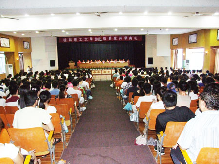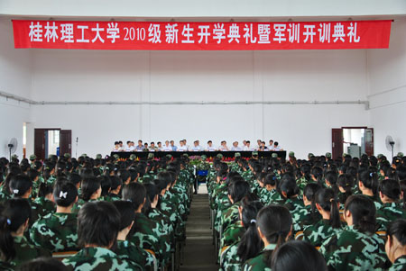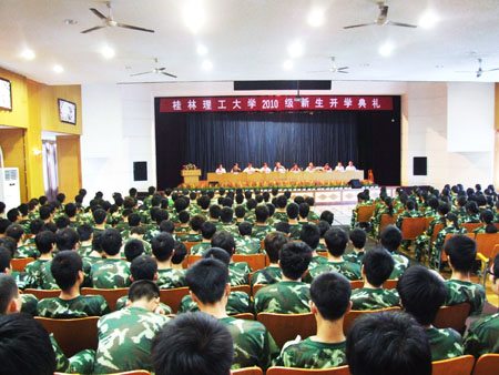 “牢记历史使命,志存高远,立志成才……明礼修身,心怀感恩;不忘家国期盼,奉献社会,报效祖国。”这是Beat365官网2010级新生在开学典礼上庄严宣誓的一幕。9月13日下午和9月14日上午,学校党委书记赵艳林,校长张学洪,副校长肖岳峰、陈学军、吴志强、周国清等在校领导分别出席了在屏风校区和雁山校区隆重举行的2010级研究生新生入学典礼、2010级专科新生入学典礼暨军训开训典礼和2010级本科新生开学典礼暨军训开训典礼。出席典礼的还有学校相关职能部门负责人、各学院领导以及武警桂林支队相关领导。 张学洪校长在研究生开学典礼上致辞,勉励他们严格要求自己,不断提升品德修养;端正科研态度,增强科研实力;激发创新能力,增强创新活力;理论联系实际,积极投身社会实践。强调2010级研究生要牢记“勤奋、求实、献身、开拓”八字校训,勤奋学习、专心科研、勇于创新,谱写桂理工大学的新篇章! 在本专科开学典礼上,张学洪校长首先代表学校热烈欢迎2010级新同学从祖国各地来到美丽的桂林,成为Beat365中文官方网站新的主人。紧接着,他以81级“大师兄”的身份向新入学的2010级学弟学妹们畅谈了怎样认真度过大学四年时光,怎样才能有所收获、才能成为一名合格的大学毕业生,并对他们提出了四点希望: 一是明确目标,培养责任。目标是方向盘,目标是指南针,远大坚定的志向和目标是一个人奋发不止的动力。作为2010级新生,应该在大学四年相对自由的环境中明确自己的目标并持续为之努力。在工作学习上要胸怀大志、勇担责任、情系家国,把个人理想和祖国需要、社会需要结合起来,努力在广阔的天空绽放绚丽人生。 二是夯实基础,力求创新。大学时代是人一生中学习的黄金时期,要珍惜这来之不易的学习机会,做好学问,夯实基础,同时力求创新。 三是团结友爱,共同进步。大学时代是人生从幼稚走向成熟的的过度阶段,许多同学从家庭环境骤然变为集体生活,不同地区、不同背景的年轻人聚早一起,要博采众长、包容谅解、团结协作、共同进步。 四要遵纪守法、自觉磨练。Beat365中文官方网站是一所治学严谨、纪律严明的学校,2010级新生要在追求个性、崇尚自由的同时遵循社会法律规范,遵守校规校纪。在即将开始的军训中培养爱国主义、集体主义和革命英雄主义精神,增强组织纪律观念、身体素质、砥砺品质。希望同学们端正态度、提高认识、严于律己、自觉磨练,认真完成各项军训任务。 在2010级研究生新生、专科新生和本科新生入学典礼暨军训开训典礼上,环境科学与工程学院院长王敦球、应用技术学院副院长周荣华、材料科学与工程学院院长韦春分别作为教师代表畅谈了自己的人生经历和学习工作心得,勉励广大同学认真做好大学学习生涯规划,刻苦学习,砥砺品质,掌握专业技能和本领,成才成人,报效祖国。 人文社会科学学院2009级研究生李鹏宇、应用技术学院2009级旅游管理专业韩瑛、环境科学与工程学院2008级环境科学专业时咏佳和旅游学院2010级研究生新生张俊霞、应用技术学院2010级旅游管理专业新生李冲、土木与建筑工程学院地理信息系统2010级新生贾尚昆同学分别分别作为在校生代表和2010级新生代表发言。 开学典礼后进行的军训开训典礼上,肖岳峰副校长、陈学军副校长分别在雁山校区和屏风校区宣布军训团任命决定,武警桂林支队负责人代表本次承训部队发表讲话。 据悉,本次军训结束时间为9月26日,教育内容为政治教育和军事理论和军事技能两种。 最后,典礼在雄壮优美的《歌唱祖国》的歌声中结束。