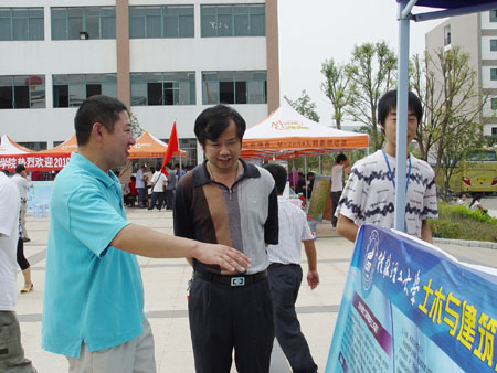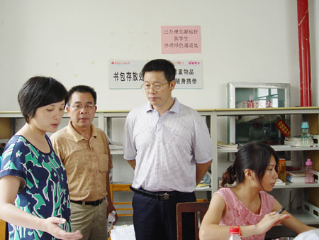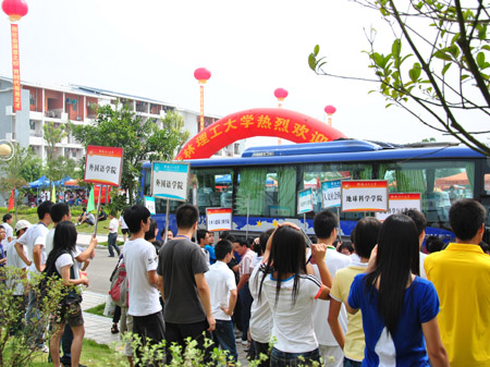 丹桂沐雨才放香,学海扬帆又启航。9月11日,学校校园内热球高悬,彩旗招展,处处洋溢着喜庆和勃勃生机。迎新广场前,“金秋送爽喜迎八方学子,丹桂飘香共祝美好明天”20个大字显得格外醒目,来自五湖四海的6000余名新生带着梦想与希望步入Beat365官网,开启他们人生的新征程。 清晨,随着在火车站迎接新生的大巴驶入迎新总站,早以翘首以待、热情期盼的迎新志愿者们立即热情引领着本院新生到迎新点去报名。志愿者们争相为新生搬运行李,给新生的家属递水,忙得满头大汗的他们仍然满脸笑容。迎新总站内各部门工作周密细致、服务热情高效,给远道而来的家长和新生带来了浓浓的暖意。 上午10时许,学校校长张学洪,党委副书记王赣华,副校长陈学军、吴志强分别到雁山和屏风校区迎新站了解新生报到情况。张学洪校长在“绿色通道”办理区详细询问了新生缴费情况,并与学生家长进行亲切交流。张学洪校长特别嘱咐工作人员,要切实做好服务工作,保证每位新同学顺利、愉快入学。