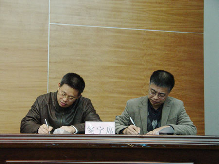 张学洪校长(左)与学院代表签订2011年毕业生就业工作目标管理责任状