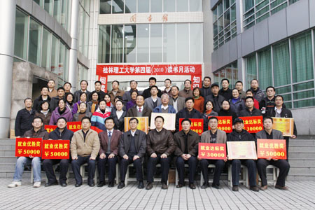 会议首先由吴志强副校长宣读了学校《关于表彰2010年毕业生就业工作先进集体和先进个人的决定》,决定授予地球科学学院、旅游学院、环境科学与工程学院、高等职业技术学院、土木与建筑学院工程等5个单位毕业生就业工作先进集体称号;授予单琳娜等55位同志毕业生就业工作先进个人称号。随后举行了颁奖仪式,在主席台就座的领导为获奖单位、个人和就业率达标的学院颁发了证书与奖金。环境科学与工程学院王敦球教授和土木与建筑工程学院谭波老师分别代表先进集体、先进个人在会上作了毕业生就业工作经验介绍与交流。