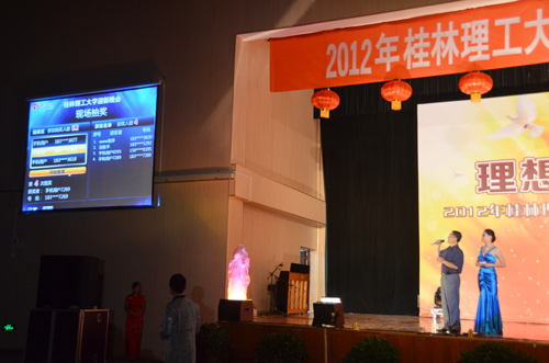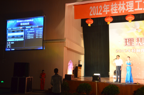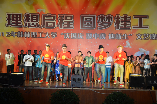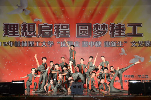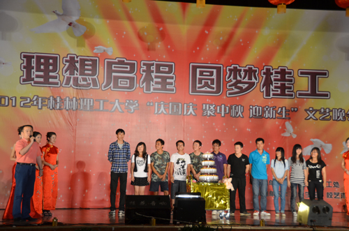 华灯初上,流光溢彩。在国庆、中秋佳节来临之际,Beat365官网也迎来了2012级新生,学校于9月28日晚在雁山校区体育训练馆隆重举办了“庆国庆·聚中秋·迎新生”文艺晚会。党委副书记王赣华,副校长肖岳峰,正厅级调研员张鹏出席并观看晚会演出,宣传部、学工处、校团委的相关负责人,各学院党委副书记及辅导员老师与全体新生齐聚一堂观看演出。 歌舞迎国庆,笑声贺中秋。一段关于新生军训宣传片点燃了同学们的热情,晚会在《走向复兴》的歌曲中拉开序幕,校艺术团合唱队以他们热情浑厚的合声,用一曲《我爱你中国》,在祖国母亲63周年华诞即将到来之际,为她献上最诚挚的祝福,祝愿我们的祖国更加繁荣富强;踏着《欢快的旋律》,展现的一张张年轻的面孔和朝气风发的活力;回望过去,多少汗水挥洒在这片热土上,多少热血谱写昨日的辉煌与成就,舞蹈《峥嵘岁月》诠释了共和国走过的63年风雨历程;器乐合奏优雅的《步步高》与欢快的《金蛇狂舞》交相辉映;在《歌曲联唱》过后,由国际教育学院带来的歌伴舞《我想去桂林》将晚会推向高潮,他们用不同的语言表达了对桂林和桂工的热爱;街舞《一炫到底》让我们看到了当代大学生对梦想的追求与青春的活力…… 这是一个创造激情的夜晚,也是个人文关怀闪耀的光芒之夜。副校长肖岳峰为在当天过生日的13位同学切开生日蛋糕,送上了生日祝福。随后,女子群舞《风酥雨忆》用曼妙的舞姿,点缀美丽的校园;武术协会的《武·光》传承了中华武术的博大精深;《埃及之旅》品味了四大文明古国浓厚的历史气息和对世界人民恒久不变的吸引力;最后,在校艺术团的《印象》中,迎新晚会圆满落幕。 “感谢有你我的相聚,从晚会到现在让我们感动,让我们体会桂工的文化底蕴,让我们在桂工一起成长,一起闪烁! ”这是来自手机用户2959790102在晚会微博上的留言,表达了2012级新生对学校的爱与归属感。晚会期间,党委副书记王赣华、正厅级调研员张鹏还参加了与同学们的互动抽奖活动,为同学们送上美好祝福。 这是一场视听盛宴,因为缘分,2012级新生齐聚一堂,因为共同的目标,他们将携手并进,在这里起航,谱写人生的新篇章。