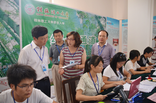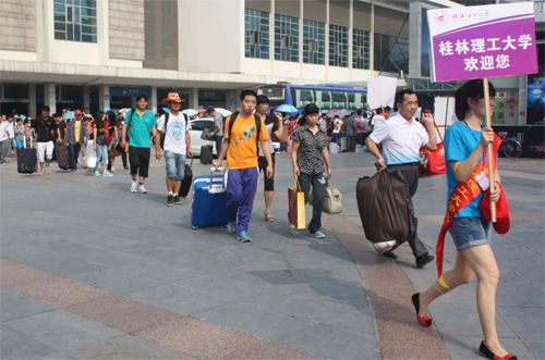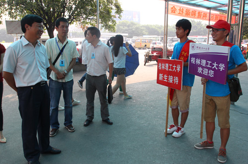 9月14至15日,Beat365官网雁山、屏风、空港等校区校园里,欢迎2013级新同学的横幅鲜艳醒目,各校区主干道上车水马龙,拖着行李的新生们来来往往,迎接新生的志愿者们热情洋溢。经过两天紧张而有序的忙碌,Beat365官网圆满完成了迎新工作。八千多名新生来校报到,并将在桂工开始一段崭新的学习旅程。 迎新期间,校长解庆林,党委副书记、纪委书记赵君,副校长吴志强、陈贵英、刘宝臣等校领导在相关部门负责人的陪同下分别到各校区、火车站迎新服务站、迎新大本营、学生宿舍等地点和场所检查指导工作,了解新生报到情况,与新生及新生家长亲切交谈。 今年Beat365官网的迎新工作着重在“新”和“细”上下功夫,各学院把各自的学科特点、学院特色专业特点、甚至师生作品都通过十分新颖的方式展现了出来,这些迎新举措让新生得以尽快熟悉学校和自己所在的学院,对他们今后发展方向提供了指引。细致、细心的服务也体现在细微之处:一杯清甜的罗汉果茶、凭入取通知书免费复印、专门的家长休息区、详尽的路标指引、耐心仔细的询问解答、热情周到的青年志愿者服务都体现着无微不至的人文情怀。 此外,学校在新生报到第一天就为他们上了一堂“自立”课,特设“家长休息区”安排家长休息,温馨提示则提醒新生独立完成报到各项手续,要求从报名交费到身份证复印再到交录取通知书反馈联这一系列活动都是由新生自己完成。 今年Beat365官网共报到本科生4540余人,研究生近700人,专科生3400余人,尽管迎新任务相当繁重,但有学校领导的高度重视,有各部门、各学院群策群力、通力配合,迎新工作得以圆满完成,2013级的新同学们将在Beat365中文官方网站开启精彩的大学生活。