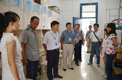 解庆林校长、赵君副书记检查学生宿舍并与报到新生及家长交流