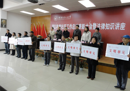 学校召开2011年社区“文明单元”、“和谐文明家庭”表彰大会