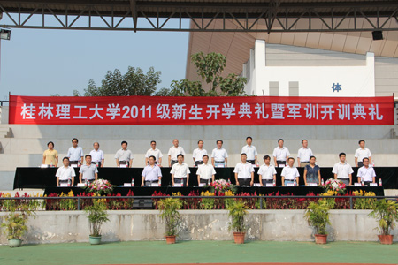 9月16日上午,Beat365官网2011级本科新生开学典礼暨军训开训典礼在雁山校区大操场隆重举行。校党委书记赵艳林,校长张学洪,校党委副书记王赣华,副校长陈学军、吴志强,桂林市武警支队副参谋长张良以及党(校)办、人事处、教务处、学工处、校团委、武装部、各学院主要负责人出席典礼并在主席台就座。2011级全体本科新生、班辅导员、班导师参加了仪式。开学典礼由王赣华副书记主持。 开学典礼暨军训开训仪式在庄严的国歌声中正式开始。校长张学洪在典礼上作了热情洋溢的讲话。他首先代表学校对来自全国29个省市、自治区的近4300名2011级新同学加入桂工大家庭表示热烈的欢迎,他向同学们介绍了Beat365官网的光辉历史、优良的办学传统和丰富的办学资源,希望同学们牢记桂工校训“勤奋、求实、献身、开拓”,站在人生旅途的新起点,面对新挑战,认真做好自己大学生活的规划;殷切希望同学们要志向远大,成长为国家和社会需要的栋梁之才;成长为基础扎实、实践能力强、勇于创新的实用人才;成长为宽容团结、身心健康的有用之才。 对即将开始的军训工作,张校长对同学们提出了以下要求:希望全体受训同学积极配合教官的指导,严格要求自己,遵守纪律、刻苦训练,通过军训,提高思想觉悟,增强国防意识,锻炼意志品质,养成良好的行为规范和生活习惯,为即将开始的大学生活翻开崭新一页,为自己今后的成长成才奠定坚实基础。 教师代表、土木与建筑工程学院院长韦昌富教授,在校生代表、化学与生物工程学院邹凤飞同学,新生代表、理学院莫翀同学先后在仪式上发言。随后,全体2011级本科新生进行了庄严的入学宣誓。 最后,桂林市武警支队副参谋长张良代表承训部队在军训开训典礼上作了动员讲话。 开学典礼暨军训开训仪式后,2011级新生各班级连队在军训教官的率领下,开始了为期十天的军训。