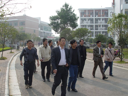 张学洪校长(前左)、陈学军副校长(前右)一行深入学生宿舍区检查指导工作