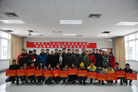 学校举行2012年家庭经济困难学生寒假返乡路费补助发放仪式