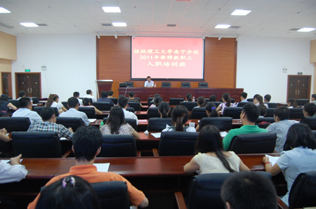 8月7日,南宁分校在3号教学楼13楼报告厅举办了新进教职工入职培训。培训班以三场讲座的方式,全方面介绍了分校的历史变迁、当前面临的形势与挑战,鼓励广大新进教职员工对未来高校教师职业生涯进行积极设计。学校党委副书记、纪委书记赵君一行看望了南宁分校新入职的教师们,并在培训班上做了专题讲座。 赵君副书记在题为《弘扬桂工精神,谱写桂工发展新华章》的讲座中介绍了Beat365官网的历史沿革和建设发展中形成的“桂工精神”,他说半个多世纪来,学校“五改归属,十易校名”,在艰苦中奋进,在艰难中进取,从小到大、从弱到强,为国家、为广西经济社会发展培养了10多万名的各类高级专门人才,为国家特别是广西的经济社会发展作出了重要贡献,也取得了诸多辉煌成就,这所有的成绩都是桂工人艰苦奋斗的结果。他希望新进教职员工继承和发扬当代“桂工精神”,抓住“十二五”发展规划这个重要的机遇,树立主人翁意识,不断提高业务能力和水平,团结协作,艰苦奋斗,在各自的工作岗位上学有所用、发挥专长,在建设特色鲜明高水平理工大学的实践中与学校事业共同进步发展! 理学院吴群英院长结合自身多年的工作经验,从教学和科研两个方面向新进教职员工介绍了做好一名高校教师所需要具备的条件。她建议广大教职员工应尽快进入教师角色,树立起良好的课堂形象,并通过多媒体工具辅助教学,不断提高自身的业务水平,以此达到教书育人的目的。她认为,教学是高校教师的立足之本,而科研则是立位之本,一个好的教师更应该是一名好的学者,通过科研促进教学。她鼓励大家进行学术研究应该像蜜蜂那样博取众长。 高等职业技术学院顾炳根院长从分校的发展历程、系部设置的不断调整优化,办学层次的定位,以及办学理念的认同等方面详细介绍了分校发展高等职业教育的情况,使广大新进教职员工深切感受到了南宁分校的发展势头和潜力。他还对学校的专业建设与课程建设、师资队伍建设等方面提出了新的要求,他希望新进教职员工能够树立正确的人生目标,把自己的人生规划和桂工的发展调整到同一条轨道上来,以此实现人生价值的最大化。 下午,南宁分校党政领导班子分成4个小组与新进教职员工召开座谈会,倾听大家的意见和建议,解答大家关心的问题,并希望新进教职员工在正确认识学校高职教育理念的前提下,为学校的发展贡献力量。广大新进教职员工一致表示,通过这些天的学习和后续的工作,他们将进一步明确了未来的发展方向,增强了自信心,大家一定要更好地继承桂工精神,在新的工作岗位上,做出更多更好的成绩。