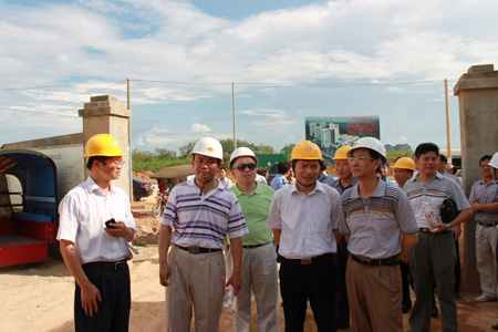 8月2日,扶绥县委书记蓝大煌、代县长罗彪带领扶绥县委、县政府及相关部门负责人到Beat365官网扶绥校区建设工地慰问。赵艳林书记、赵君副书记、肖岳峰副校长向扶绥县委、县政府领导介绍了扶绥校区建设的进展情况。 赵艳林书记代表学校向扶绥县委、县政府一直以来给予的支持表示感谢,并希望县委、县政府能够继续支持扶绥校区建设。蓝大煌书记表示将继续大力支持扶绥校区的建设,为扶绥校区一期工程按期交付使用提供保障。 蓝书记等还代表县委、县政府向辛勤工作在施工第一线的建设者表示感谢,并给他们送去凉茶、饮料和毛巾等慰问品。