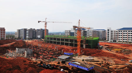 此外,雁山校区其它项目目前建设动态如下:科技综合楼已于2010年10月动工,目前工程进展顺利,南楼主体结构封顶,北楼已完成五层楼面,4月份将组织主体结构验收。雁山校区标志性建筑图书馆工程已于2010年11月动工,工程进展顺利,目前工程进入局部三层楼板建设阶段。2#学生公寓组团和2#学生食堂工程项目已完成基础开挖,计划于5月底6月初结构封顶,8月底组织竣工验收。12#基础实验楼已完成招标,正组织施工。3#食堂和校医院及后勤用房正组织招标。