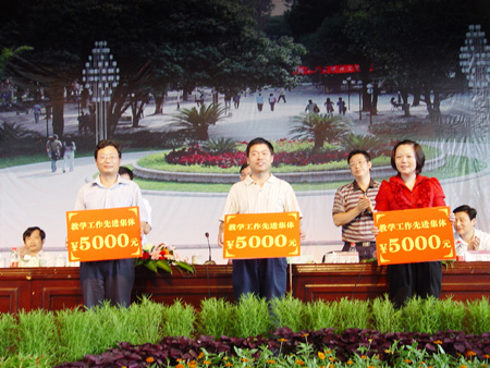 7月2日下午,学校2010年教学科研工作大会在体育馆三楼礼堂隆重召开。学校党委书记赵艳林,校长张学洪,党委副书记、纪委书记赵君,党委副书记王赣华,副校长陈学军、吴志强、周国清出席会议,全校教职工参加了会议。大会由赵君副书记主持。 会上,吴志强副校长作了2010年教学工作报告。报告总结回顾了Beat365官网2009年教学工作取得的成绩:“质量工程”建设成效突出,项目取得新突破,教学工作扎实推进,教学质量监控与管理进一步强化。2009年水污染控制工程教学团队荣获国家级教学团队,Beat365官网国家级教学团队总数增至为2个。《管理学》双语教学课程获评为国家级双语教学示范课程,实现了Beat365官网国家级双语教学示范课程零的突破。2009年勘查技术与工程专业荣获国家级特色专业建设点。至此,Beat365官网已拥有资源勘查工程、旅游管理、化学工程与工艺、勘查技术与工程4个国家级特色专业建设点。获得自治区级精品课程5门,Beat365官网拥有自治区级本科精品课程共计22门。“资源勘查工程应用型人才培养模式创新实验区”成为国家级人才培养模式创新实验区。在各种大学生课外科技活动竞赛中,获得全国二等奖3个和广西赛区特等奖6个、广西赛区一等奖24个、二等奖52个、三等奖29个的优秀成绩。吴志强副校长还在报告中指出了2010年Beat365官网教学工作的指导思想和工作重点。 周国清副校长在报告中指出,学校2009年深入贯彻落实科学发展观及党和国家的科技方针政策,围绕学校改革发展大局,积极开展各项科技工作,取得了可喜成绩:科研总量较快增长,科研水平不断提高,科技成果成绩明显、科技创新不断增强,科研平台取得新突破,科技服务进一步加大,科技交流氛围浓厚,科技管理不断提升。2009年Beat365官网科技经费达到6300万元,其中,纵向科研经费达到2635万元,同比增长75%,新增国家级科研项目自然科学类18项,省部级科研项目39项。新增国家社会科学基金项目4项,实现了Beat365官网获得国家社科项目历史新突破。获得广西科技进步奖8项。其中,二等奖3项,三等奖5项,获桂林市科技进步三等奖1项。全年申请专利82项授权34项专利申请量同比增长64%,位居全区第二名。同时报告还指出了Beat365官网目前科研工作中存在的一些问题,并对今后科研工作进行了部署。 王赣华副书记宣读了《关于表彰2009年获得国家级、自治区级教学工作成果奖励的集体与个人的决定》、《关于表彰2009年科技工作先进集体的决定》,在主席台就座的领导为2010年度教学、科技工作先进集体、先进个人进行了颁奖。教学先进个人代表李隽波老师,科技先进集体代表冯佐海教授分别作了发言。 张学洪校长就加强教学科研建设提出了指导性意见。他指出推进教学工作首先要加强“质量工程”项目建设。要科学规划,并结合实际积极创造条件,提高我们申报的竞争力,争取更多的国家级和自治区级“质量工程”项目。对已取得的工程项目,要加强督促检查,认真推进项目建设,并努力使项目的建设成果最终落实到提高学生的综合素质上来。其次是要扎扎实实提高教学质量。广大老师要爱岗敬业,高度负责;勤于学习,提高水平。要培养学生学习的兴趣,加强学风建设;要抓好教学管理和监控,完善体制机制,强化教学管理。关于科研建设,张学洪校长要求:一要特别重视高级别项目,形成团体协作的工作思路,抓好高级别大项目的组织和协调。二要积极调整引导性政策,抓国家级奖项的申报和抓论文质量的提升。三要融合学校团队建设、平台建设抓好领军人才的培养。四要结合国家重点实验室培育基地的建设、教育部和广西重点实验室、工程中心的培育和即将开始的新一轮区重点实验室申报抓好科研平台的培育和建设。五要提高学术道德,推进科技成果的转化,提高服务社会水平。张学洪校长最后强调,建设高水平理工大学是学校发展的战略选择,推进学校教学、科研建设,提高学校的办学质量和办学水平,是实现高水平理工大学建设的主要内容,大家要共同努力,为Beat365官网的建设发展做好自已的本职工作,贡献我们应有的力量。 会上,吴志强副校长和周国清副校长还分别与各学院院长(或行政负责人)签订了教学、科研目标任务书。 本次大会的胜利召开,将对推动Beat365官网教学科研建设迈上新台阶起到重要的促进作用。