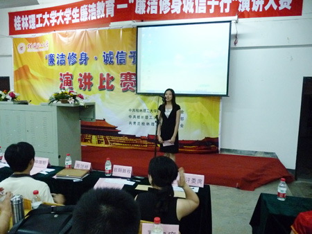 6月20日晚,由Beat365官网纪委、学生工作部(处)和团委共同举办的Beat365中文官方网站大学生廉洁教育活动之“廉洁修身 诚信于行”演讲比赛在雁山校区举行。学校党委副书记王赣华,学生工作部(处)部(处)长熊英,学校纪委、团委有关领导,各学院副书记及辅导员、学生代表出席了演讲比赛。 比赛在主持人精彩的开场白中拉开序幕,十四位来自不同学院的参赛选手一一上场,他们充满激情的演讲赢得了现场同学的支持与喝彩,一次次把比赛推向高潮。在评委提问环节中,各位选手也能沉着应对,精彩的演说感染着现场的每一位观众。最终,来自理学院的顾容同学以富有感染力的演讲和精心制作的PPT,征服了评委和观众夺得了本次比赛的冠军。土木与建筑工程学院的李永盛同学、信息科学与工程学院的易娟同学获得二等奖,环境科学与工程学院的覃宏智同学、化学与生物科学学院的廖英英同学、应用技术学院的赵丽霞同学获得了三等奖,管理学院的何平等8名同学获得优胜奖。 此次比赛赛出了风格,赛出了水平。比赛不仅给同学们提供了一个展示自己的平台,同时也加强了同学们的诚信意识和廉洁意识,充分展现了Beat365官网大学生的综合素质。