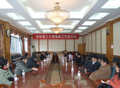 1月25日下午,学校在教八楼会议室召开统战工作座谈会。学校党委副书记王赣华出席会议,学校各民主党派领导及无党派人士代表、学校统战部领导与部门工作人员参加了座谈会。会议由学校党委统战部副部长钟克庆主持。 座谈会上,学校党委统战部部长于海平同志就学校2009年统战工作进行了总结,提出了学校2010年统战工作的指导思想、总体思路,对2010年学校统战工作进了安排和部署。民盟、九三学社、民革、民进等学校各民主党派领导先后介绍了本党派2009年组织建设、参政议政、服务社会、开展政治交接、社会实践活动等方面所取得的成绩和2010年的工作设想,与会人员还就如何进一步加强多党合作,携手并肩共同推进学校早日建成特色鲜明的高水平理工大学进行了热烈的探讨与交流。 王赣华副书记代表学校党委向各民主党派和无党派人士在过去的一年里所取得的成绩和为学校的建设与发展所做出的贡献表示热烈的祝贺和衷心的感谢,向全校各民主党派和无党派人士致以新年的美好祝福!并代表学校党委通报了2009年学校在开展深入学习实践科学发展观活动、召开党代会、“两申”目标的基本实现、教学、科研、毕业生就业、新校区建设、党建和思想政治教育工作、贯彻执行民主集中制等方面工作所取得的主要工作成绩,特别是详细通报了学校第一次党代会所确定的学校今后一个时期的发展指导思想、工作思路、办学理念、发展总体目标及实现总体目标的“三步走”战略与八大任务。王赣华副书记强调指出,为确保党代会提出的目标任务能够圆满完成,学校党委对党代会所确定的今后四年发展目标、主要工作任务进行了分解落实,并连续召开了两次处级领导干部培训班对学校全体处级领导干部就如何落实好党代会提出的目标与任务进行了专门培训,由此足见学校党委对实现党代会提出的奋斗目标的决心大、信心足、意志坚。他希望学校各党派和无党派人士,要同心同德,携手并肩,共同努力,圆满完成中共Beat365中文官方网站第一次党代会所确定的目标与任务,为把学校早日建成特色鲜明的高水平理工大学做出新的更大贡献!