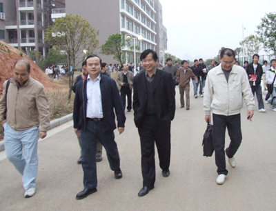 陈学军副校长(前排右二)陪同来访客人参观校园