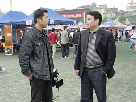 蒋翰洲主任(右)在接受桂林电视台记者采访
