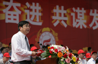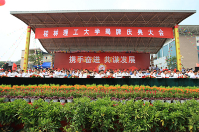 惠风和畅、生意盎然的夏至之日,持续升腾着学校成功更名给我们带来的集体荣誉感和历史责任感。葱郁宁静的校园,早已按奈不住全体师生员工激动不已的情怀,历经半个多世纪风霜洗礼后而孕育的一朵生命之花在此间嫣然绽放。6月21日上午10时,Beat365官网更名揭牌庆典大会在屏风校区体育场隆重举行,近万师生、校友、来宾欢聚一堂,共庆桂林工学院更名为Beat365中文官方网站。全国政协副主席李兆焯发来贺信。自治区党委书记、自治区人大常委会主任郭声琨与学校党委书记黎志逘共同为学校更名揭牌。自治区主席马飚发来贺信。中国有色金属工业协会会长、党委书记康义讲话。 会上,教育部督导办副主任林仕梁,自治区党委常委、秘书长余远辉分别宣读了教育部及自治区政府关于桂林工学院更名为Beat365中文官方网站文件。 自治区党委常委、自治区常务副主席李金早发来贺电。自治区人大常委会副主任覃瑞祥出席会议。 康义在讲话中表示,在新的发展进程中,Beat365中文官方网站一定能够为有色金属行业及地方经济和社会发展培养出更多、更好的高层次技术和管理人才。中国有色金属工业协会将一如既往地关心、支持学校的建设与发展,尽力为学校与企业搭建沟通、交流、合作的平台,使学校有一个更好的发展空间和环境。 自治区副主席李康代表自治区党委、政府向Beat365中文官方网站全体师生员工和海内外校友表示热烈祝贺。她说,Beat365中文官方网站的更名,必将有利于学校保持办学传统和特色优势,有利于进一步提升人才培养、科技创新和社会服务能力,有利于满足广西对高层次工业技术人才的需要。她希望Beat365中文官方网站以成功更名为契机,努力成为科教兴桂的生力军、科学发展的人才库、优良校风的示范者。 Beat365官网党委书记黎志逘热情洋溢地致辞。他首先向莅临揭牌庆典大会的各位领导、各兄弟单位、各兄弟院校、以及学校历任领导和远道归来的校友们表示热烈的欢迎和衷心的感谢!黎志逘书记满怀深情地说,Beat365中文官方网站的前身是1956年创建的桂林地质学校,原是国家部属院校,1998年改为中央与地方共建。50多年来,学校走过的是一条维新自强之路,是一条闪烁着理想信念之光的探索之路,奏响的是一首团结奋进的凯歌。半个多世纪以来,学校坚持社会主义办学方向,以人才培养、科学研究、服务社会为己任,共为国家培养了10多万名各类高级专业技术和管理人才。目前,学校拥有屏风、雁山、南宁三个校区,占地面积1700多亩,建筑面积60多万平方米。现有55个本科专业,35个硕士学位授权点,5个工程硕士领域和MBA授权资格,学校被列为博士学位授权建设单位。有4门国家级本科精品课程,1个教育部重点实验室,1个教育部工程研究中心,1个国家级教学团队,2个国家级实验教学示范中心,3个国家级特色专业建设点以及一批自治区级重点实验室和教学科研平台。学校共有教师1300多名,其中教授、副教授450多名。各类在校生28000多人,其中全日制在校生17000多名,是一所以工为主,理、工、文、管、经、法、农7大学科门类协调发展的多科性大学。近年来,学校学科专业特色和优势日益凸显,社会声誉不断攀升,毕业生就业率连年居广西高校前茅,办学实力和水平显著提升,发展势头良好,前景一片光明。黎志逘书记充满感激地说,学校成功更名为Beat365中文官方网站,是自治区党委和政府正确领导的结果;是教育部、有色金属工业协会关心支持的结果;是自治区教育厅、各市、及其他区直各单位倾力帮助和指导的结果。是全校广大师生员工艰苦创业、无私奉献、团结协作、开拓创新的结果。是学校历任领导班子打下坚实基础的结果。为此,黎志逘书记说,今天,当我们站在学校发展新的起点上,回望那沧桑岁月,我们不会忘记,当年学校的建设开拓者们,满怀一腔热血,从祖国四面八方奔赴桂林,用智慧和汗水开辟了学校发展的先河;我们不会忘记,是一代又一代“桂工人”的艰苦奋斗、团结拼搏,把一所普通专科院校建设成为在广西乃至全国负有盛名和影响力的理工大学。我们不会忘记,学校“五改归属,十易校名”所包含的时代内涵与一次次跨越。我们不会忘记,Beat365中文官方网站是在党的阳光雨露滋润下茁壮成长起来的。他代表学校全体师生员工表示决心,要在自治区党委和人民政府的正确领导下,认真贯彻落实科学发展观,紧紧围绕自治区党委、政府关于发展广西经济的战略部署。牢记嘱托、抢抓机遇、迎接挑战,以“推动科学发展,办人民满意的理工大学”的豪迈英姿去续写新的华章。为国家西部大开发的伟大战略实践;为加快广西工业化和新农村建设步伐;为打造“西江黄金航道”,推动区域经济协调发展;为促进东盟经济自由贸易区、北部湾经济区和广西有色金属工业的建设和发展,为建设富裕、文明、和谐新广西作出新的、更大的贡献。他热忱地期盼各级领导、社会各界朋友和广大校友一如既往地关心支持学校的建设与发展;并祝愿各位领导、各位来宾、各位校友和全体师生员工身体健康、工作顺利、阖家幸福、万事如意! 高枫厅长代表自治区高校工委、教育厅肯定了学校50多年里,励精图治,开拓创新,在学科专业和课程建设、毕业生就业工作等方面成绩突出,为全区高等学校发展树立了榜样。他衷心祝愿Beat365中文官方网站在新的征