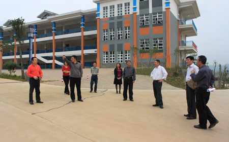 3月21日,张学洪校长、王赣华副书记在招生就业处处长陈先华、发展规划处处长王文等的陪同下来到南宁空港校区检查指导工作。肖岳峰副校长和校长助理、高等职业技术学院院长刘宝臣等高职学院负责人陪同查看了南宁空港校区建设情况。 张校长现场查看了南宁空港校区一期工程范围内的校园绿化情况和校园的排水设施建设,并详细了解了二期建设用地情况。张校长强调校园绿化苗木种植完成后,要做好后期的养护工作;结合校园地势情况,校区要做好排水工程,为师生营造更好的校园环境。 目前,校区内种植的银杏树、桂花树、樟树、秋枫、榕树等景观树木大部分已经成活,并长出枝叶,部分未成活的树木也已更换新树,各类花木竞相绽放,校园内一片春意盎然的景象。