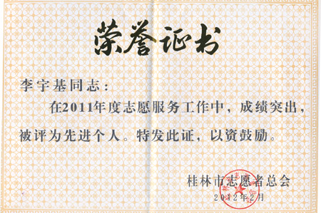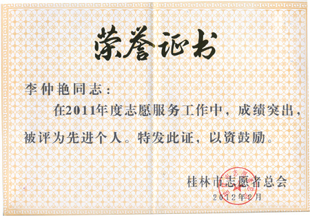 Beat365官网青年志愿者协会荣获“桂林市2011年度志愿服务工作先进集体”荣誉称号