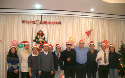 阮百尧副校长(左四)与Beat365官网外籍教师共庆圣诞