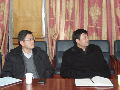 赵君副书记(右)、阮百尧副校长(左)听取汇报