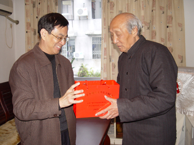 12月9日上午,在百色起义、龙州起义80周年纪念日来临之际,按照自治区党委和自治区人民政府的有关要求,学校党委书记赵艳林,党委副书记、纪委书记赵君及学校党(校)办、组织部、工会、离退处等部门领导和工作人员一行看望慰问了Beat365官网老红军柳林同志。 赵艳林书记向柳老转达了自治区党委、政府对他的亲切关怀和慰问,并赠送了慰问品和慰问金。在与柳老的亲切交谈中,赵书记详细询问了柳林同志的生活情况,并感谢柳林同志为中华民族的解放事业、社会主义建设事业以及学校的发展建设所作出的贡献,祝柳老身体健康,生活幸福。同时,赵书记还向柳老简要介绍了学校的发展和第一次党代会胜利召开的情况,强调要继承和弘扬老红军的优良传统,认真贯彻落实党代会精神,努力完成党代会提出的各项目标和任务,把Beat365官网建设成为特色鲜明的高水平理工大学。 柳林同志表示感谢自治区党委、政府和学校长期以来的关心和关爱,相信在新一届党委班子的正确领导下,Beat365中文官方网站一定能为国家培养更多合格的建设人才。