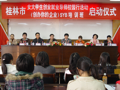 12月5日上午,“桂林市女大学生创业就业导师校园行--《创办你的企业》SYB”系列创业培训活动启动仪式在Beat365官网举行。Beat365官网党委副书记王赣华,桂林市妇联党组书记、主席闻建成,桂林市妇联副主席朱丽芬,桂林市劳动和社会保障局副局长魏承林及Beat365官网招生就业处、学工处、团委等相关负责人出席启动仪式。启动仪式由Beat365官网招生就业处副处长范玲主持。 学校党委副书记王赣华致欢迎词,他首先代表学校对桂林市女大学生创业就业导师校园行活动的正式启动表示热烈的祝贺,并对桂林市妇联、桂林市劳动和社会保障局给予Beat365官网创业教育工作的大力支持和配合表示衷心的感谢。他指出,社会经验的不足是当前在校大学生创业的最大瓶颈,希望同学们把握好这次学习机会,学会让自已受益终身的创业知识和技能,为将来最大程度释放自已的创业潜能,实现自已人生价值的最大化打下坚实基础。 启动仪式上,桂林市劳动和社会保障局副局长魏承林代表市劳动和社会保障局作了讲话。他指出,本次活动旨在引导、鼓励和支持在校大学生通过创业实现就业,围绕大学生转变就业观念、参与创业实践、提高创业本领等方面开展有针对性的创业培训,为大学生提供创业信息和政策咨询、创业资金贷款推荐、创业风险防范、创业导师帮扶等综合服务,拓宽在校大学生就业和实践渠道,为促进在校大学生就业和推动社会经济的稳定发展提供坚实的保障。 桂林市妇联党组书记、主席闻建成代表市妇联作了讲话。她在讲话中指出,受多种因素的影响,当前我市女大学生就业问题非常突出。本次活动的目的就是引导即将毕业离校踏入社会的女大学生认清形势,树立正确的择业观,清醒认识到经济危机带来的严峻就业压力,并帮助她们提高就业创业技能本领,从发展大势中寻求就业创业契机,促进女大学生就业创业。 启动仪式结束后,SYB创业培训专家关丽珍老师为同学们作了题为《创办你的企业》的专题培训。