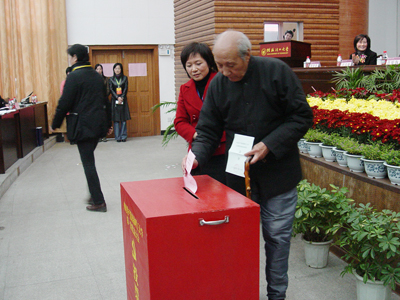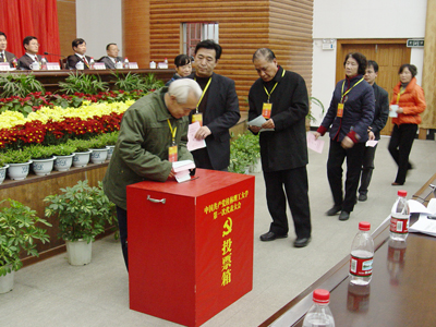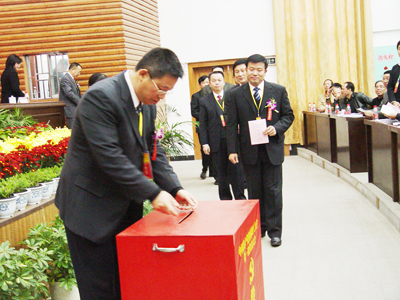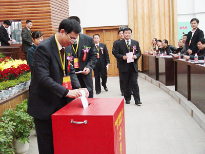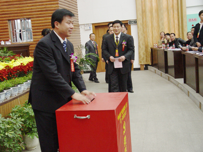 大会执行主席张学洪投票