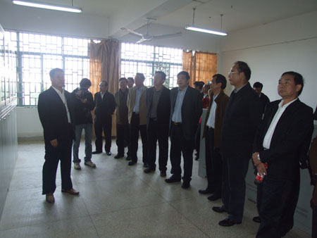 12月1日上午,自治区本科高校教育教学改革座谈会代表一行60余人在自治区高校工委书记、区教育厅高枫厅长的带领下莅临Beat365官网雁山校区考察指导。会议代表包括自治区高校工委秦敬德副书记,区教育厅黄宇、郭连科副厅长,林宁巡视员及教育厅各处室负责人和全区20所普通本科高校的主要负责人。学校党委书记赵艳林,校长张学洪,党委副书记、纪委书记赵君,党委副书记王赣华,副校长肖岳峰、陈学军、吴志强、周国清等校领导及学校各部门负责人陪同考察。