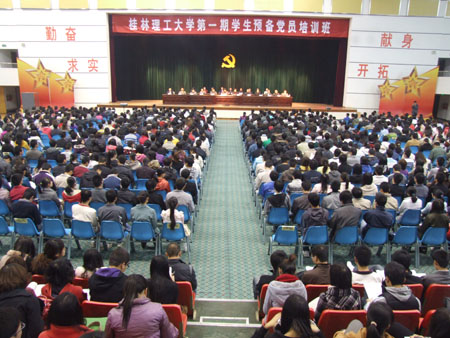 本次培训班内容还有“十七届五中全会精神解读”、“认真过好预备期,做合格的共产党员”、“弘扬‘桂工精神’,在校风、学风建设中发挥党员先锋模范作用”、“廉政教育”等专题报告,同时各二级党校还将开展“爱我桂工,美化校园”学生党员创先争优实践活动和分头组织学员赴兴安红军长征突破湘江烈士纪念碑园参观考察。