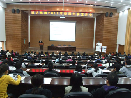 车克焘先生结合溢达集团发展情况从当前国际大背景、我国当前内需与出口的形势、近8年来服装行业发展趋势三个方面为Beat365官网2011届毕业生进行宣讲,图书馆报告厅内人气爆满,掌声不断。