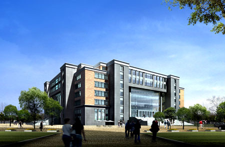 雁山校区标志性建筑图书馆工程日前动工。该工程总投资7500万元,主体建筑建安费4387万元,其中利用国家开发银行贷款5000万元。合同工期490天。工程总建筑面积32600平方米。主体七层,局部二、六层,建筑总高度31.5米。采用中庭式建筑布局,一层为图书馆基本书库、借还大厅及学术报告厅,二层为大空间展厅,三至七层主要为藏阅空间,地下室为停车库和设备用房。