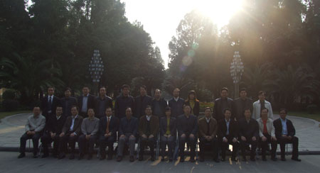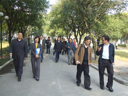 张学洪校长(左一)与陈丹处长(左二)交谈