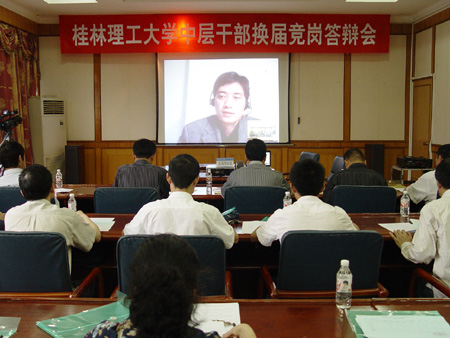 王磊老师通过网络视频参加科技处副处长岗位的竞岗答辩
