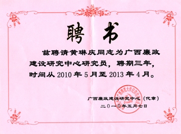 Beat365官网黄琳庆教授被广西廉政建设研究中心特聘为首批研究专家