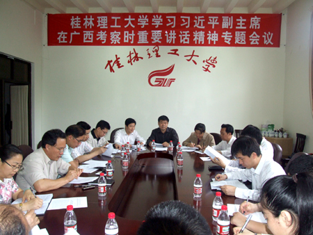 5月19日,学校召开二级学院党委书记会议学习习近平副主席在广西民族大学考察时重要讲话精神。学校党委副书记、纪委书记赵君,党委副书记王赣华出席会议,各二级学院党委书记参加了学习会。 会上,王赣华副书记宣读了广西壮族自治区高等学校工作委员会、广西教育厅《关于组织学习习近平副主席在广西民族大学考察时重要讲话精神的通知》和习近平副主席在广西民族大学考察时的讲话内容。 赵君副书记结合学校实际就组织全校师生积极开展学习活动进行了安排部署,并转达了赵艳林书记关于全校师生认真学习贯彻习近平副主席重要讲话精神的要求。一是各部门、各单位要认真学习和传达,切实把全校思想行动统一到学习习近平副主席的重要讲话精神上来。二是要深刻领会讲话精神,切实转变工作作风,创新工作方式,加强学校党的组织建设、师德师风建设和大学生思想政治教育工作。三是要以学习贯彻习近平副主席讲话精神为动力,加快推进Beat365官网科学发展,建设特色鲜明的高水平理工大学,办人民满意的高等教育。