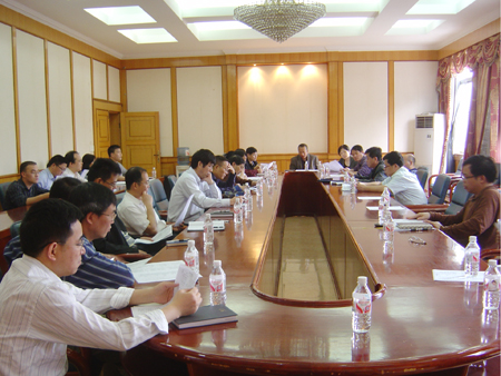 5月19日上午,学校在教八楼会议室召开中央财政支持地方高校发展专项资金建设规划和年度项目编制申报工作会议,申报工作领导小组副组长吴志强副校长向全体成员转达了领导小组组长张学洪校长的意见,对如何进一步开展工作提出了明确要求。 会上,领导小组办公室主任、学校发展规划处处长王文通报了对学校各单位、有关部门报来的各项规划项目的初步评议意见,并提请大家讨论。 吴志强副校长要求大家一定要认真领会文件精神,明确申报指导思想;制订申报项目时要注意量与质的结合;领导小组在申报项目、申报项目名称等方面要加强与各单位、各部门协商;要从大局出发,调整和整合项目,实现全校资源共享。他还要求领导小组尽快制订申报工作的具体时间表,以保证申报工作的顺利进行。 与会人员对各自申报的项目情况进行了认真的讨论和沟通。最后会议对规划和申报项目基本达成一致意见,并决定对有关项目继续进行个别沟通、交流和讨论。