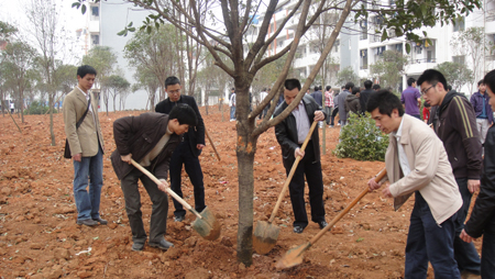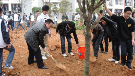 3月17日下午,肖岳峰副校长,学工处、校团委相关领导及土木与建筑工程学院、地球科学学院的老师和同学们参加了雁山校区开展的“千校植万树”主题植树活动。 肖岳峰副校长种下了第一棵桂花树,Beat365官网“千校植万树”主题植树活动正式启动。整个植树活动有条不紊的进行,同学们干劲十足,有的铲土,有的抬水,经过大家的辛勤劳动,原本空旷的土地变得春意盎然。师生们尽管大汗淋漓,可是脸上无不洋溢着劳动带来的快乐。 老师与同学们在本次活动中共同发扬了团结协作、艰苦奋斗的精神,增强了“保护生态环境,共建绿色家园”的意识,为我们美丽的雁山校区增添了绿色的气息。通过开展大植树活动,广大师生增强了环保意识,生态意识,积极参与到植树造林、绿化祖国、绿化校园工作中去。 此次系列活动是根据广西区绿化委、教育厅、林业厅的工作部署,为更好的美化绿化校园,在高校校园内掀起造林绿化高潮,从2010年至2015年,在全区教育系统开展“千校植万树”活动。Beat365官网还将在今年组织广大师生种植桂花、紫薇、棕榈等树苗1000株左右。