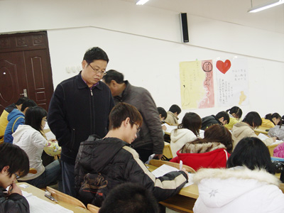 1月18日上午,学校副校长吴志强在教务处处长吴晓鸣的陪同下,到雁山校区各考场进行了巡视和检查。 巡视过程中,吴志强副校长对考场秩序、考场环境和教师监考工作等情况进行了认真仔细的检查,并对考务工作人员认真履行监考职责给予了充分的肯定。吴志强副校长强调,考试是学校教学工作的重要环节,必须从校风、学风建设的角度出发,严肃考场纪律、狠抓考风建设,提高教学质量。