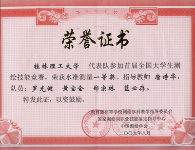 7月30日至8月1日,首届“南方杯”全国大学生测绘技能竞赛在河南理工大学举行。来自全国32所设有测绘二级学科硕士点本科高校的128名选手、32名指导教师参加了比赛。 大赛由教育部高等学校测绘学科教学指导委员会、国家测绘局职业技能鉴定指导中心、中国测绘学会联合主办,河南理工大学承办。比赛分为测绘实践技能与理论知识考核两个环节,其中测绘实践技能包含了一级电磁波测距导线、四等水准测量和数字测图等3项内容。全国高校测绘学科教学指导委员会、测绘学会教育委员会主任宁津生院士等国内测绘行业10余位专家及相关领导出席并观看了比赛。 此次比赛,Beat365官网土木与建筑工程学院组建了测绘系唐诗华、文鸿雁、任超、卢献健等老师组成的指导小组,经过层层考核,选拔了测绘工程专业罗光健、黄宝全、蓝必存、郑宗林四位同学作为Beat365官网唯一一支代表队。在唐诗华老师的精心指导下,选手们经过了为期长达四个月的艰苦训练,其中包括二公里的水准路线、每段二百米共计五段的闭合导线路线以及200*200平方米的数字测图三项内容。 7月30日至7月31日圆满完成三项比赛内容。经过两天紧张有序的比赛,Beat365官网代表队取得了水准测量一等奖、数字测图测量三等奖的优异成绩。四名同学的优异表现展现了Beat365官网测绘工程专业学子的风采。